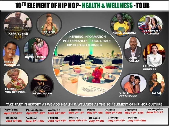 The 10th element of Hip Hop tour will showcase a truly special one of a kind experience that inspires and changes lives, which includes a full Hip Hop Green Dinner, the 10th Element of Hip Hop Speakers Series and a Hip Hop concert in each city reaching more than 35,000 people nationwide.